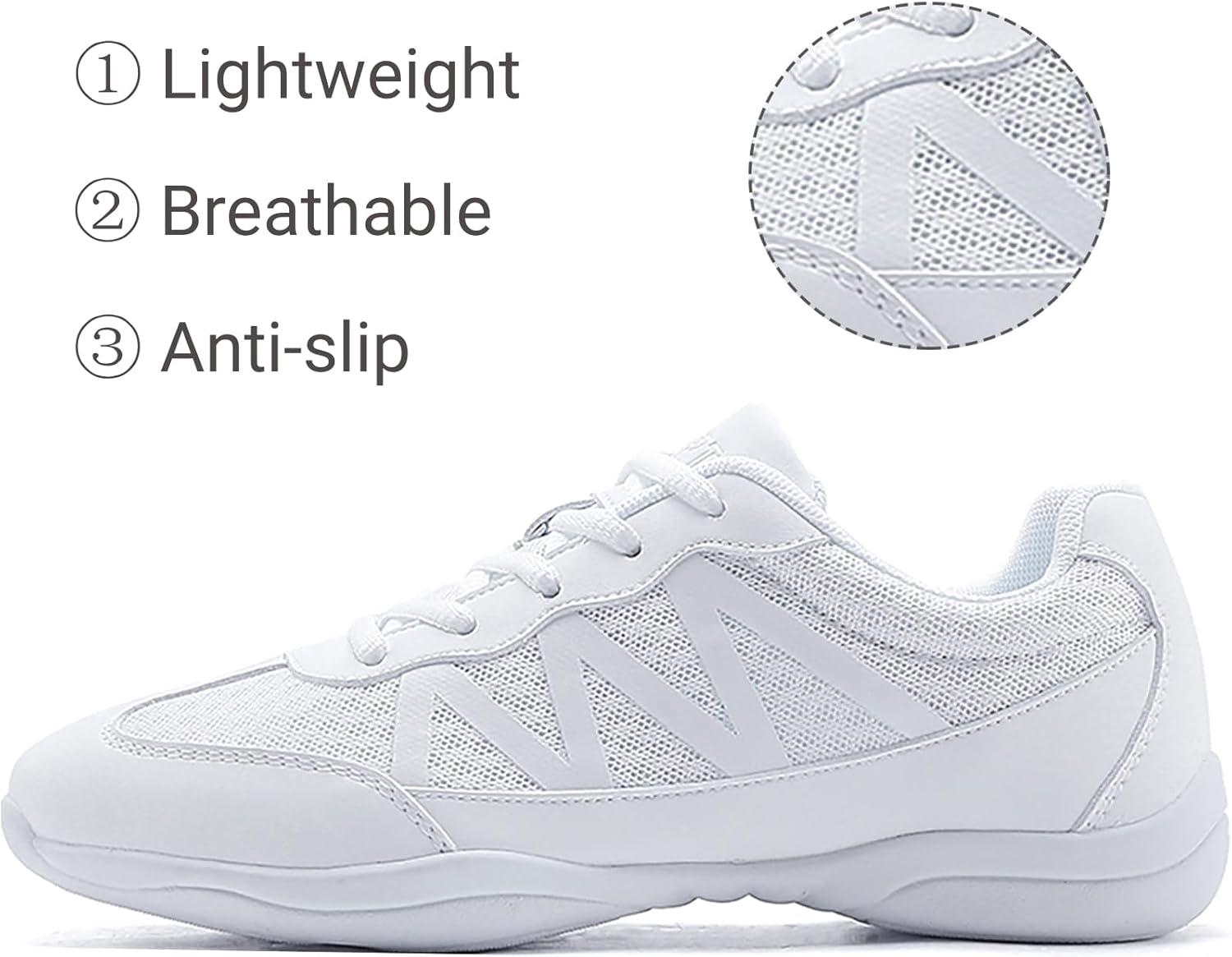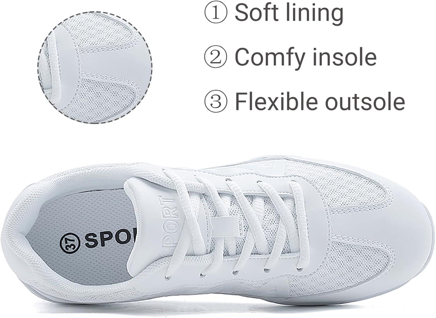 BAXINIER Girls Cheerleading Shoes Women White Cheer Shoes Youth Cheer Competition Sneakers Athletic Training Dance Tennis Shoes(White 2105-girls)