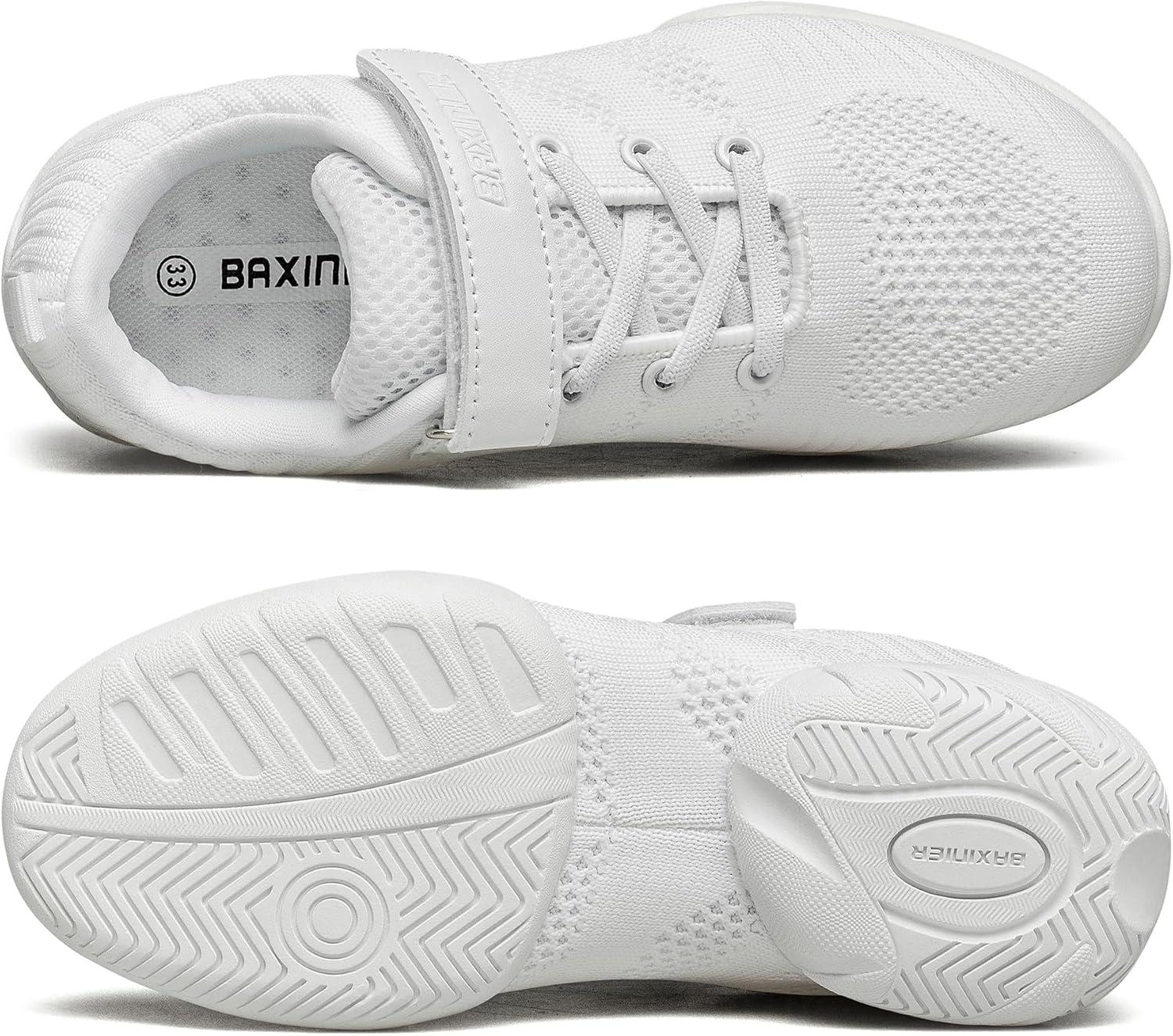 BAXINIER Girls White Cheerleading Dance Shoes Athletic Training Tennis Breathable Youth Competition Cheer Sneakers(White 610)