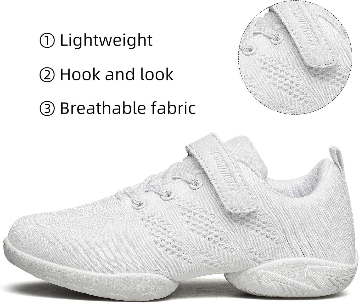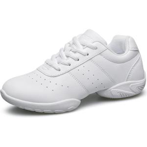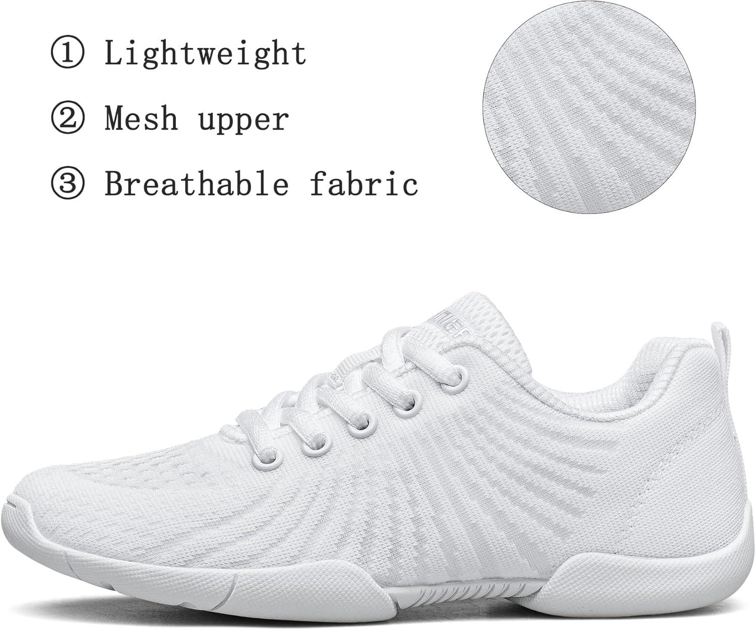 BAXINIER Girls White Cheerleading Dance Shoes Breathable Youth Cheer Competition Sneakers Athletic Training Tennis Shoes(White 937)