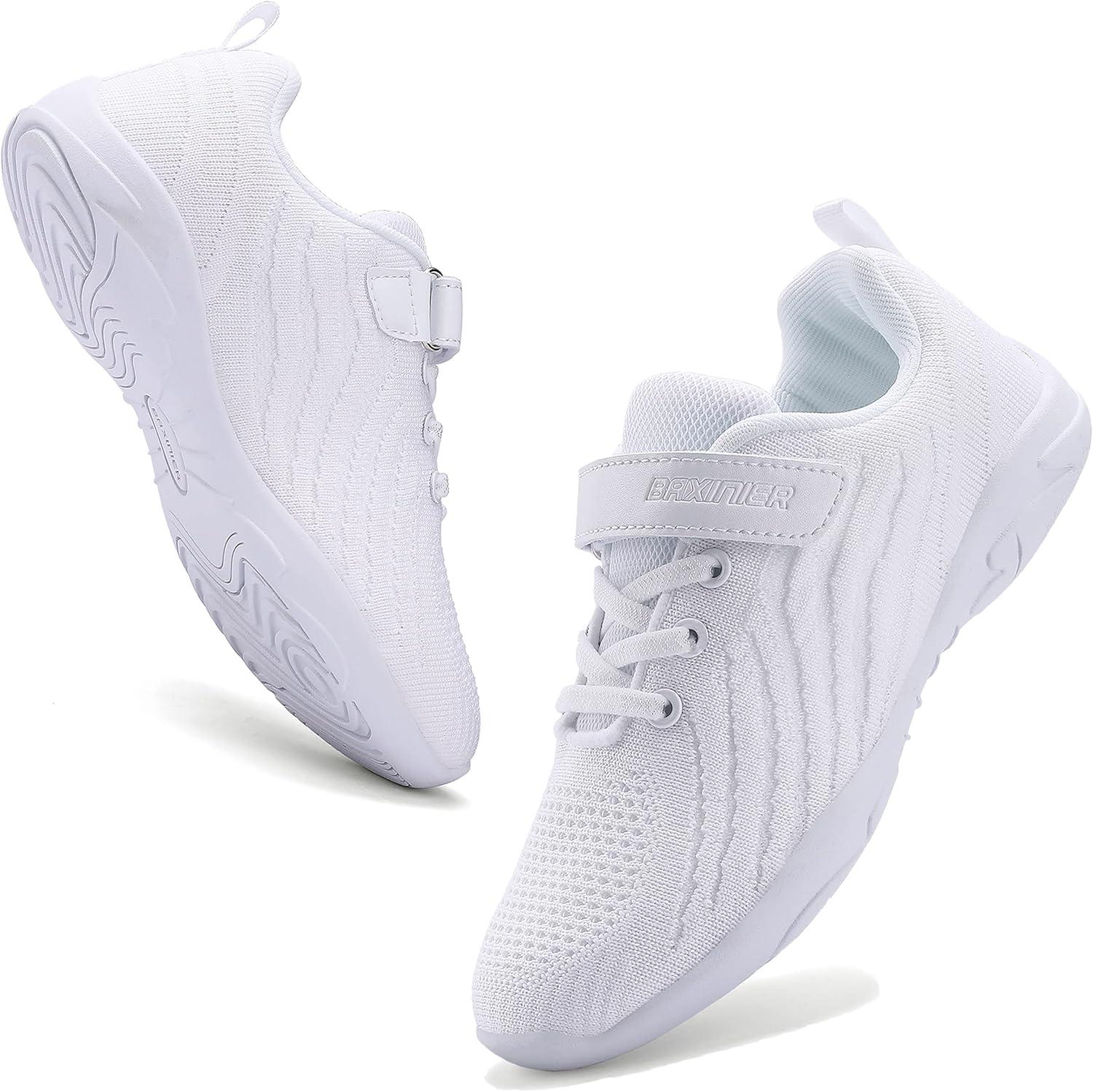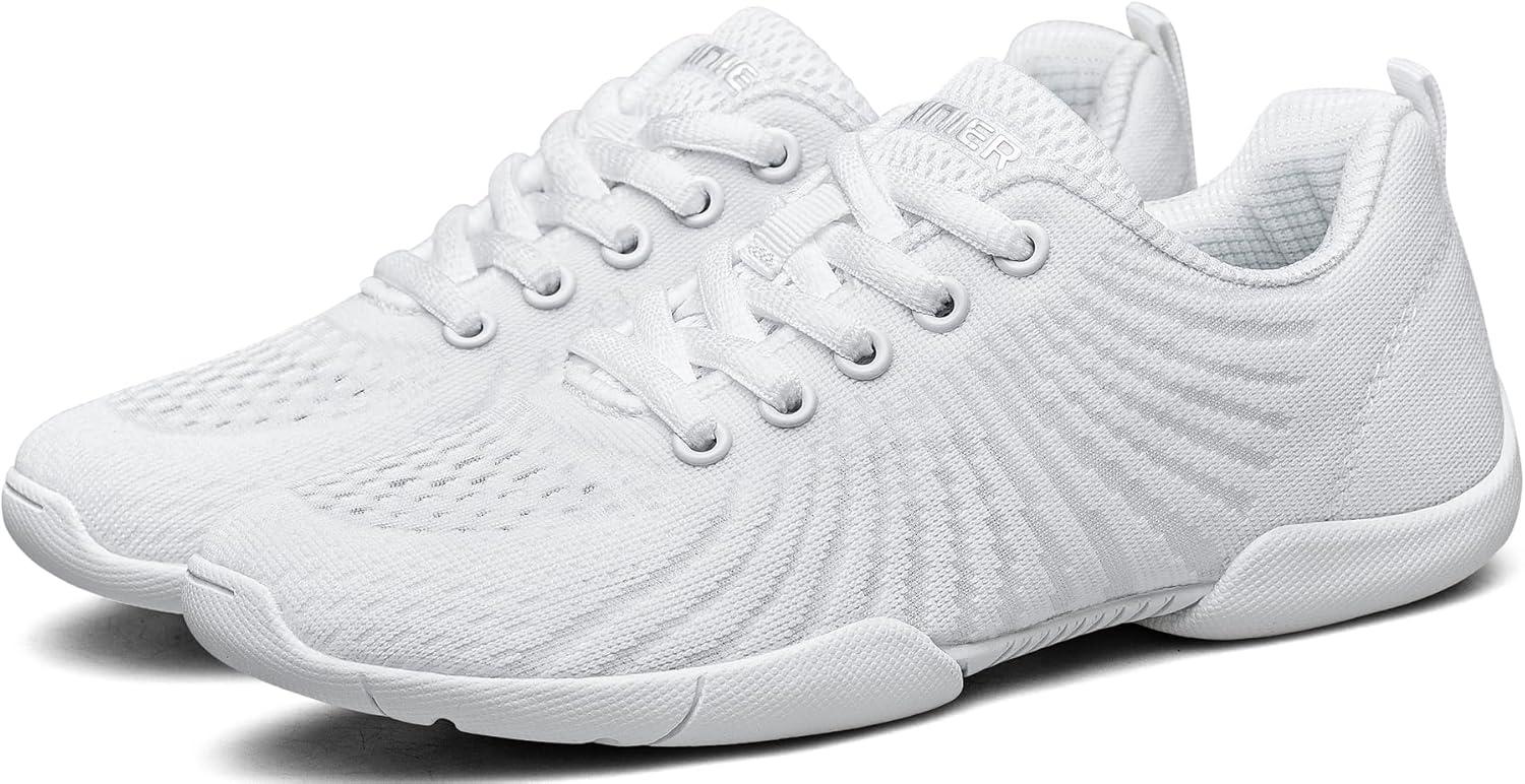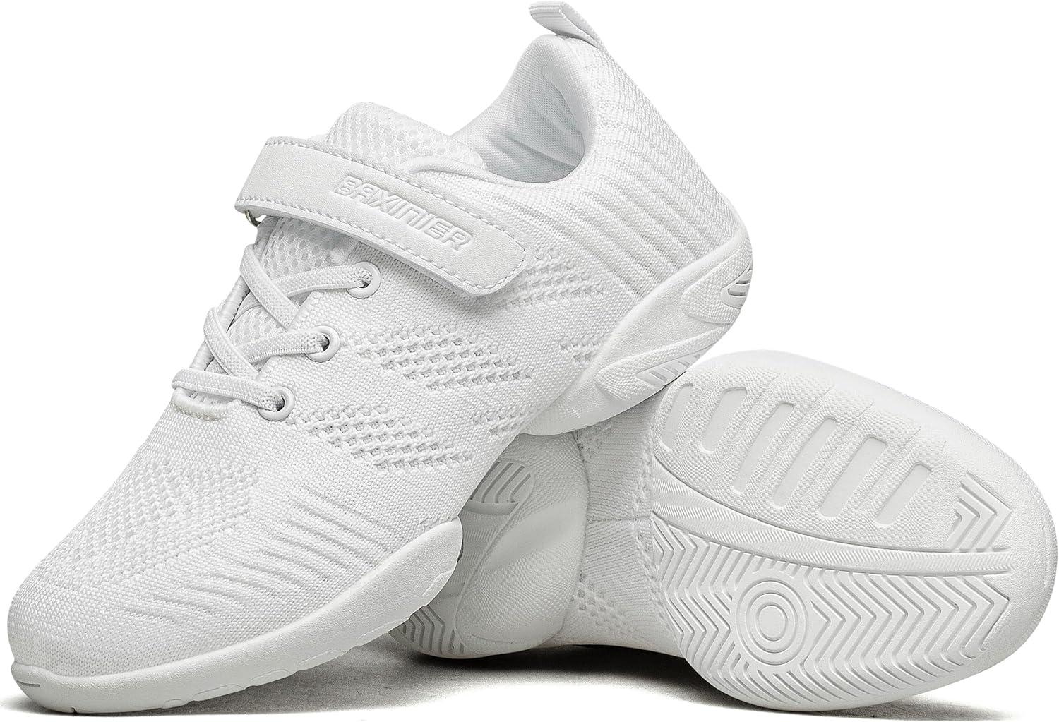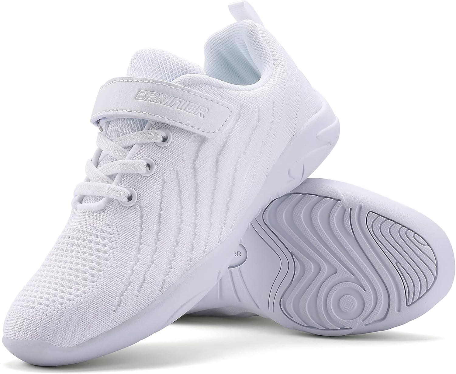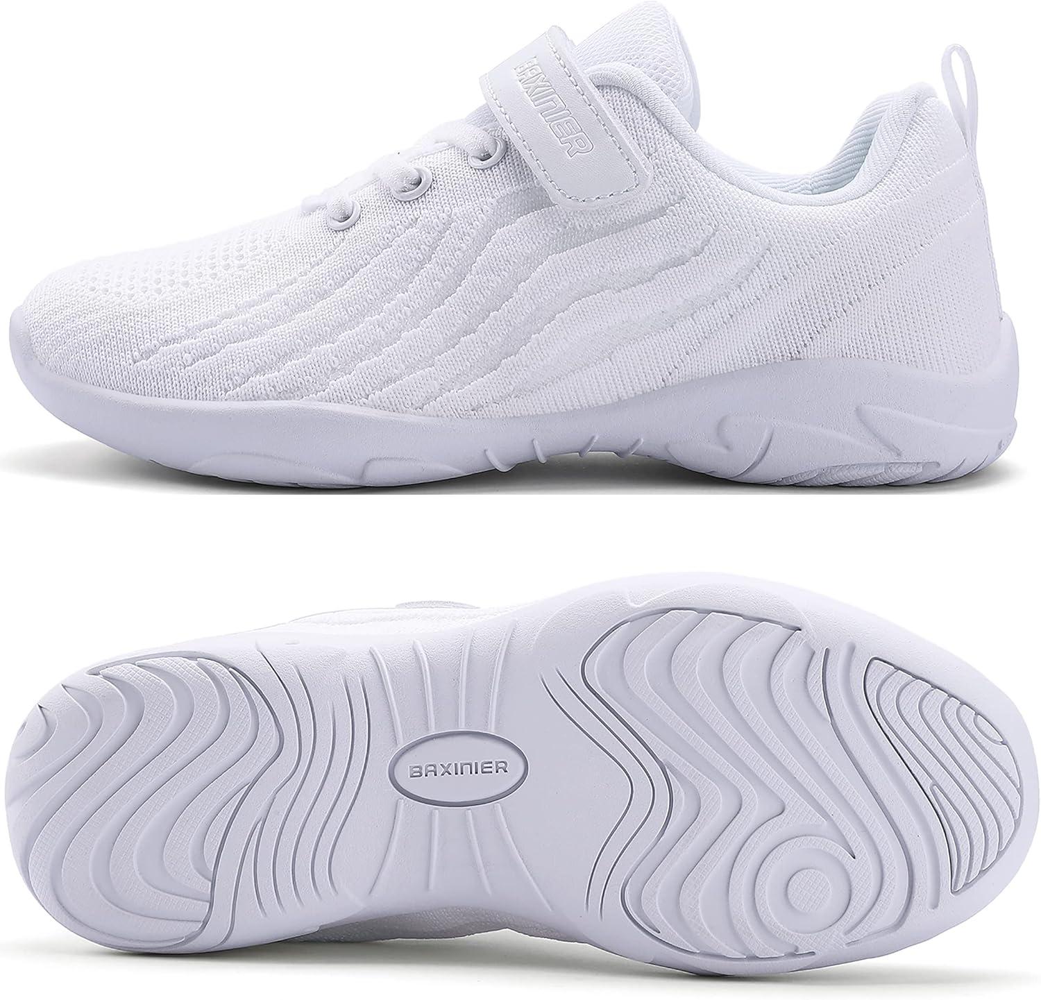 BAXINIER Youth Girls White Cheerleading Dancing Shoes Athletic Training Tennis Walking Breathable Competition Cheer Sneakers(White 002)