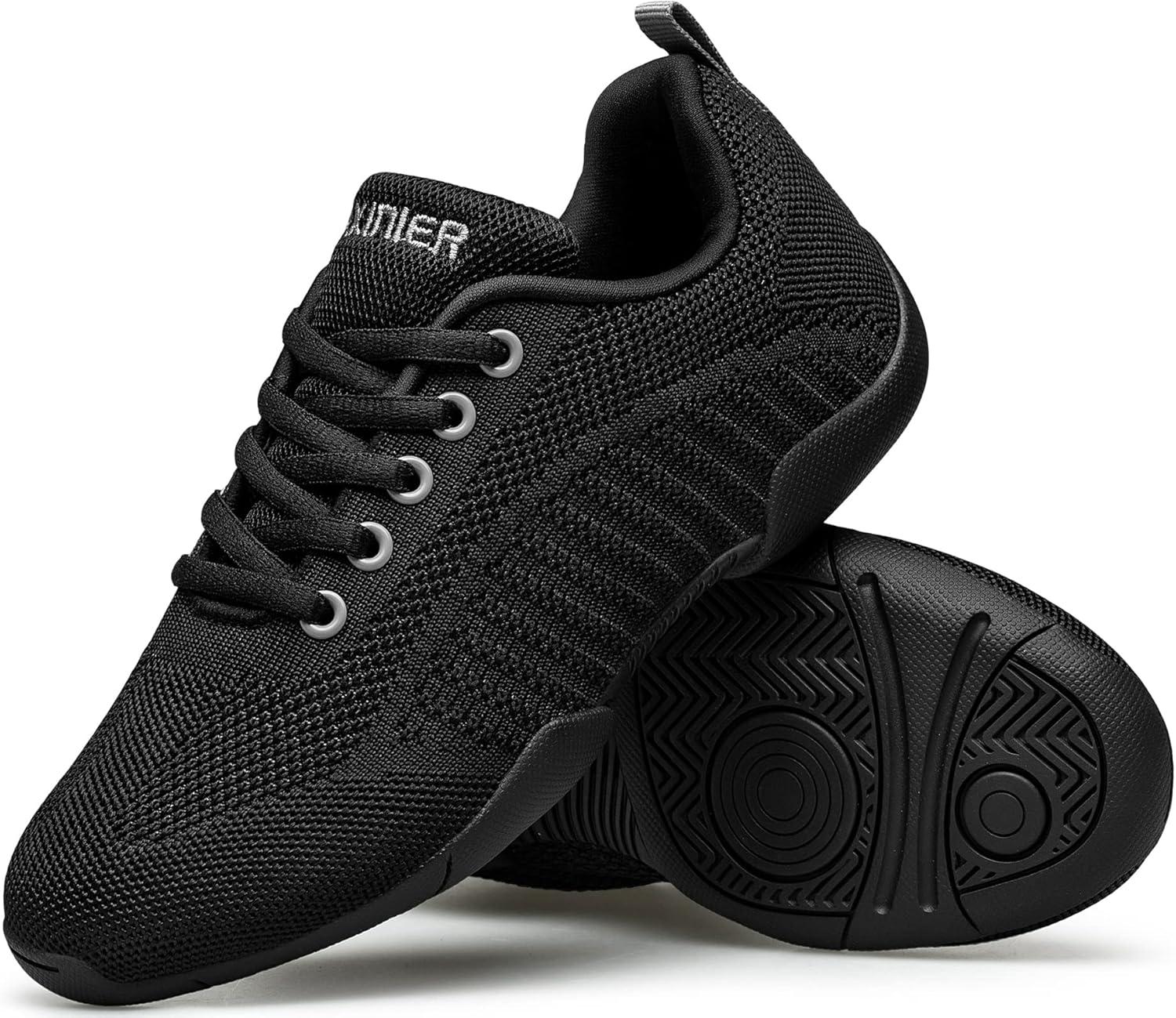 BAXINIER Girls White Cheerleading Shoes Breathable Youth Cheer Competition Sneakers Athletic Training Dance Tennis Walking Shoes(Black 851-women)