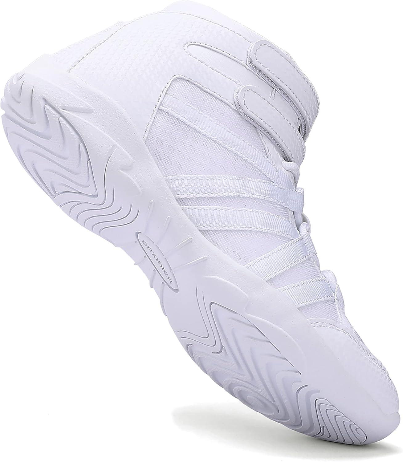 BAXINIER Girls White High Top Cheerleading Shoes Lightweight Youth Cheer Competition Sneakers Training Dance Tennis Shoes(White 301)