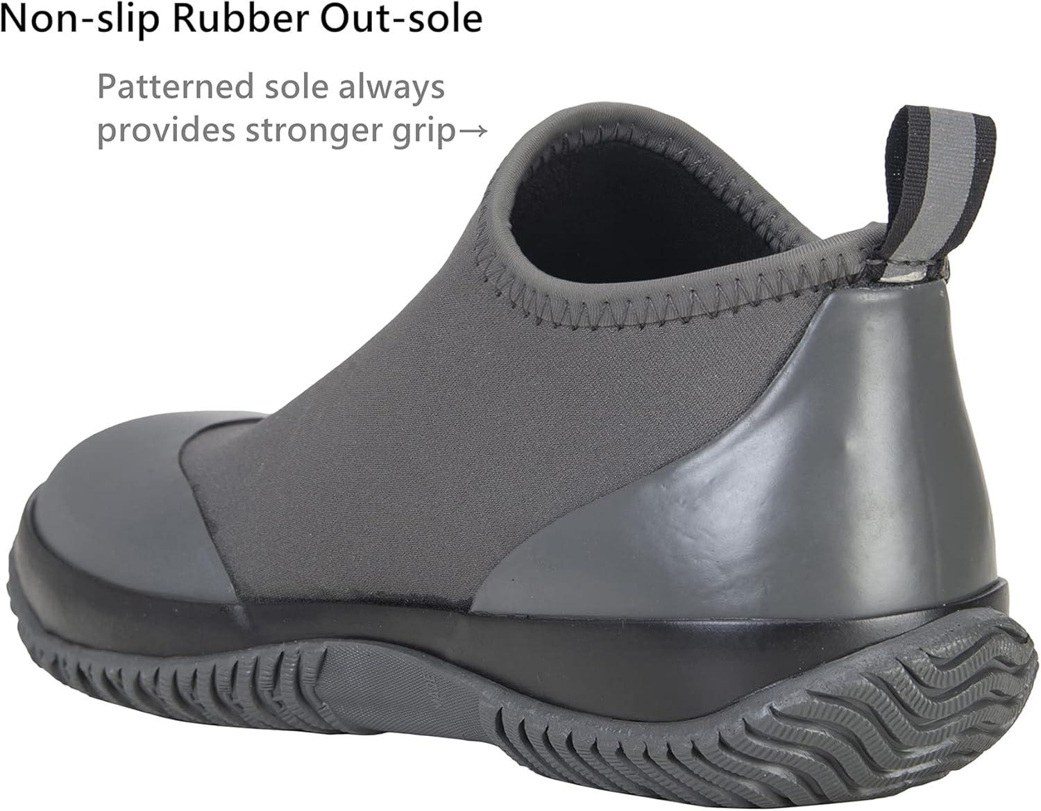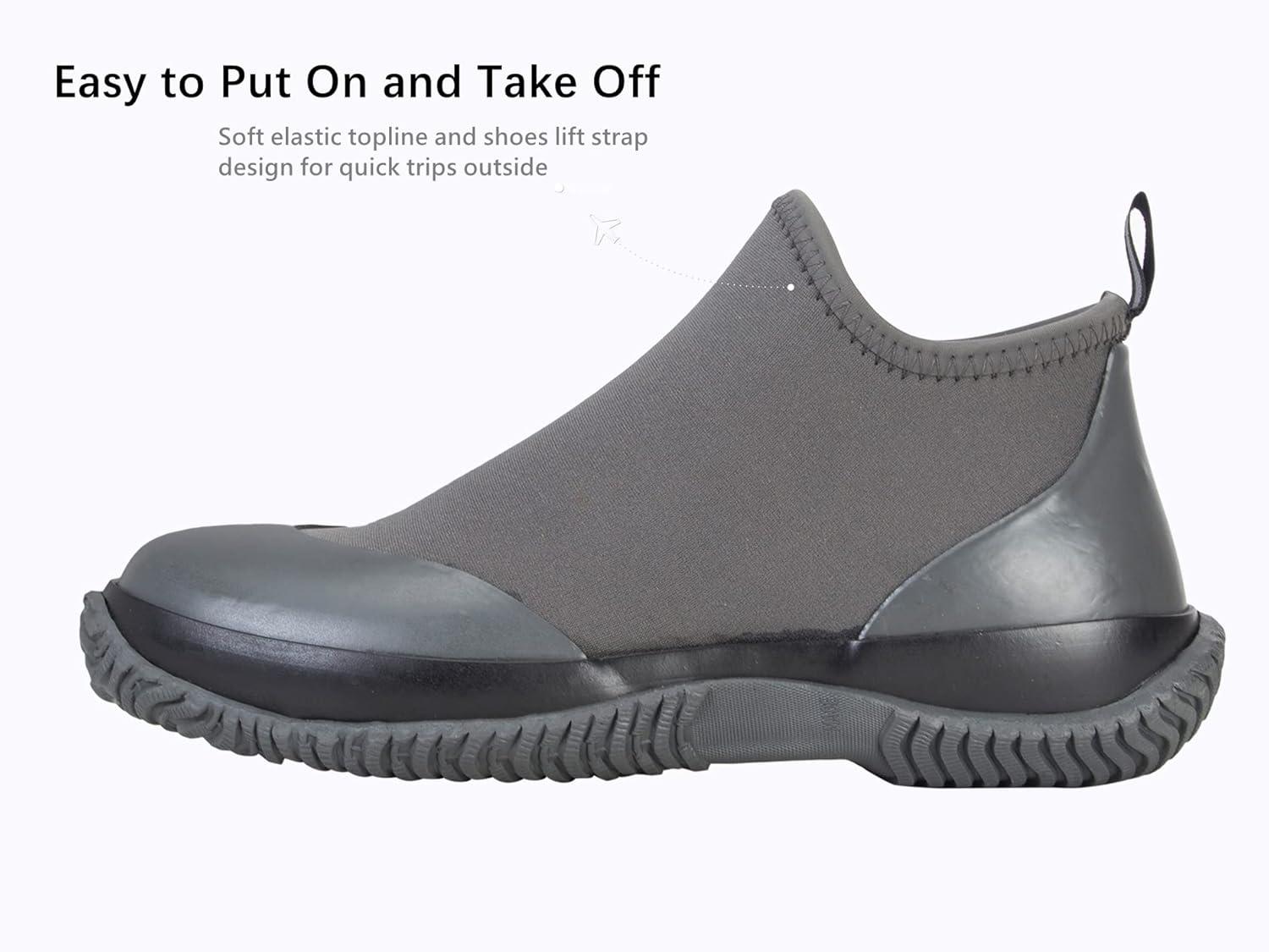 BAXINIER Waterproof Garden Shoes Mens Lightweight Low Short Rain Footwear Outdoor Neoprene Rubber Boots – Grey 9.5