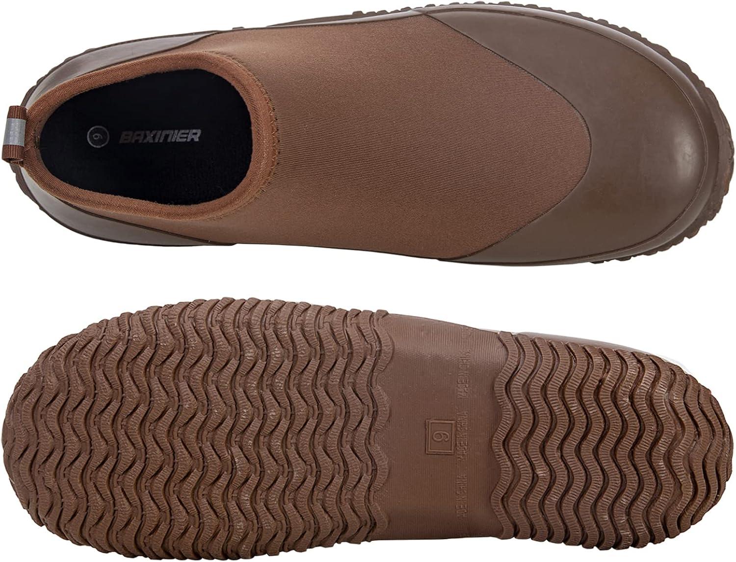 BAXINIER Waterproof Garden Shoes Mens Lightweight Low Short Rain Footwear Outdoor Neoprene Rubber Boots(Brown 238)