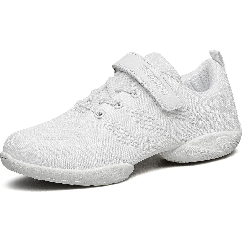 BAXINIER Girls White Cheerleading Dance Shoes Breathable Youth Cheer Competition Sneakers Athletic Training Tennis Shoes(White 937)