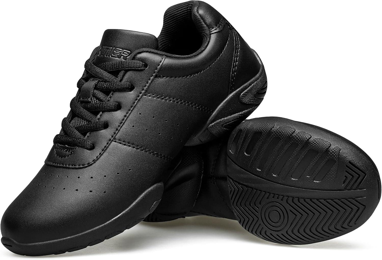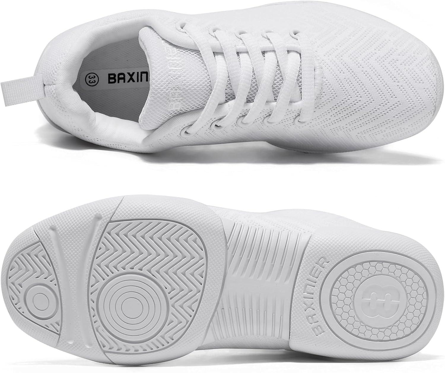 BAXINIER Girls White Cheerleading Shoes Breathable Youth Cheer Competition Sneakers Athletic Training Dance Tennis Walking Shoes(Black 851-girls)
