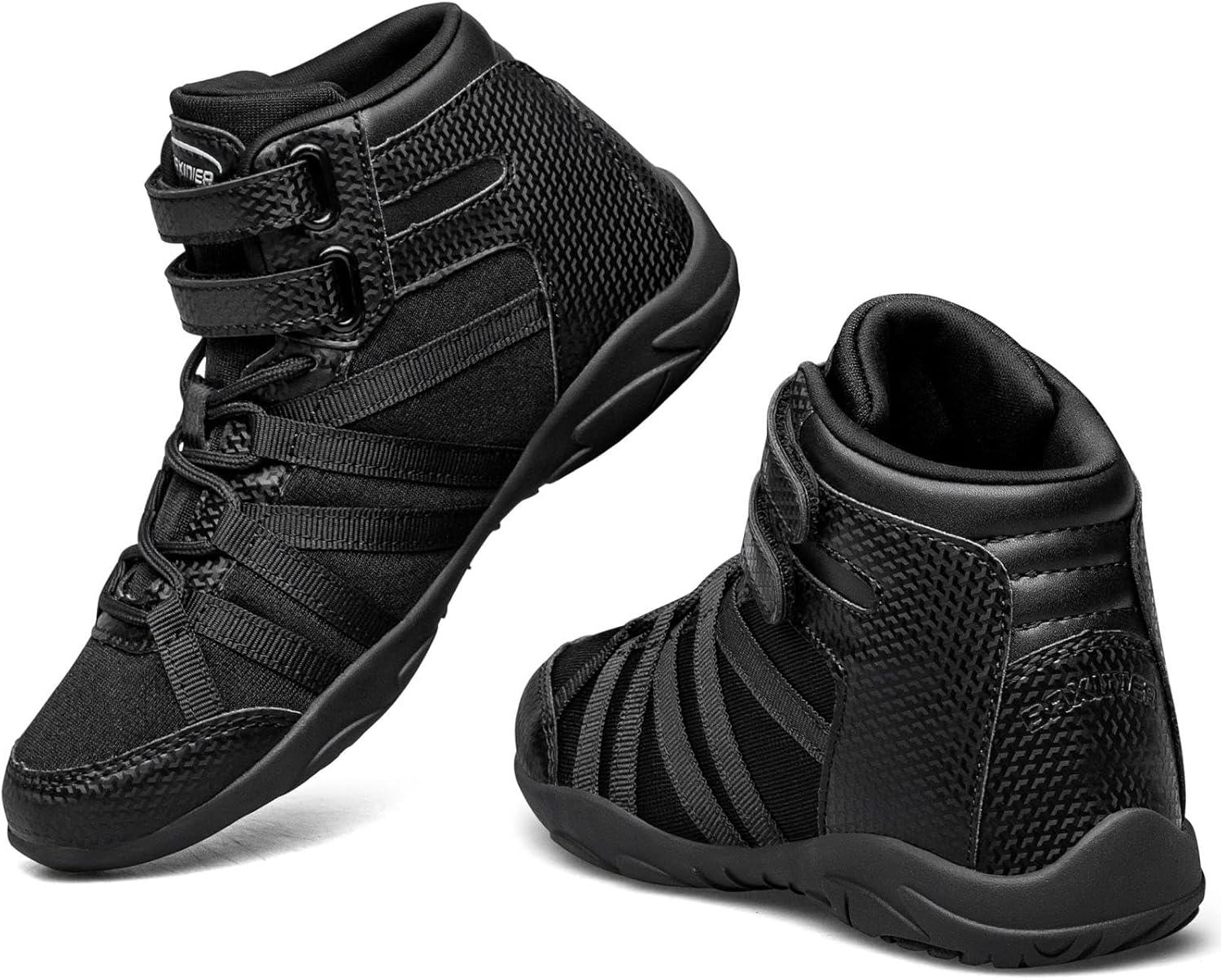 BAXINIER Girls White High Top Cheerleading Shoes Lightweight Youth Cheer Competition Sneakers Training Dance Tennis Shoes(Black 301)