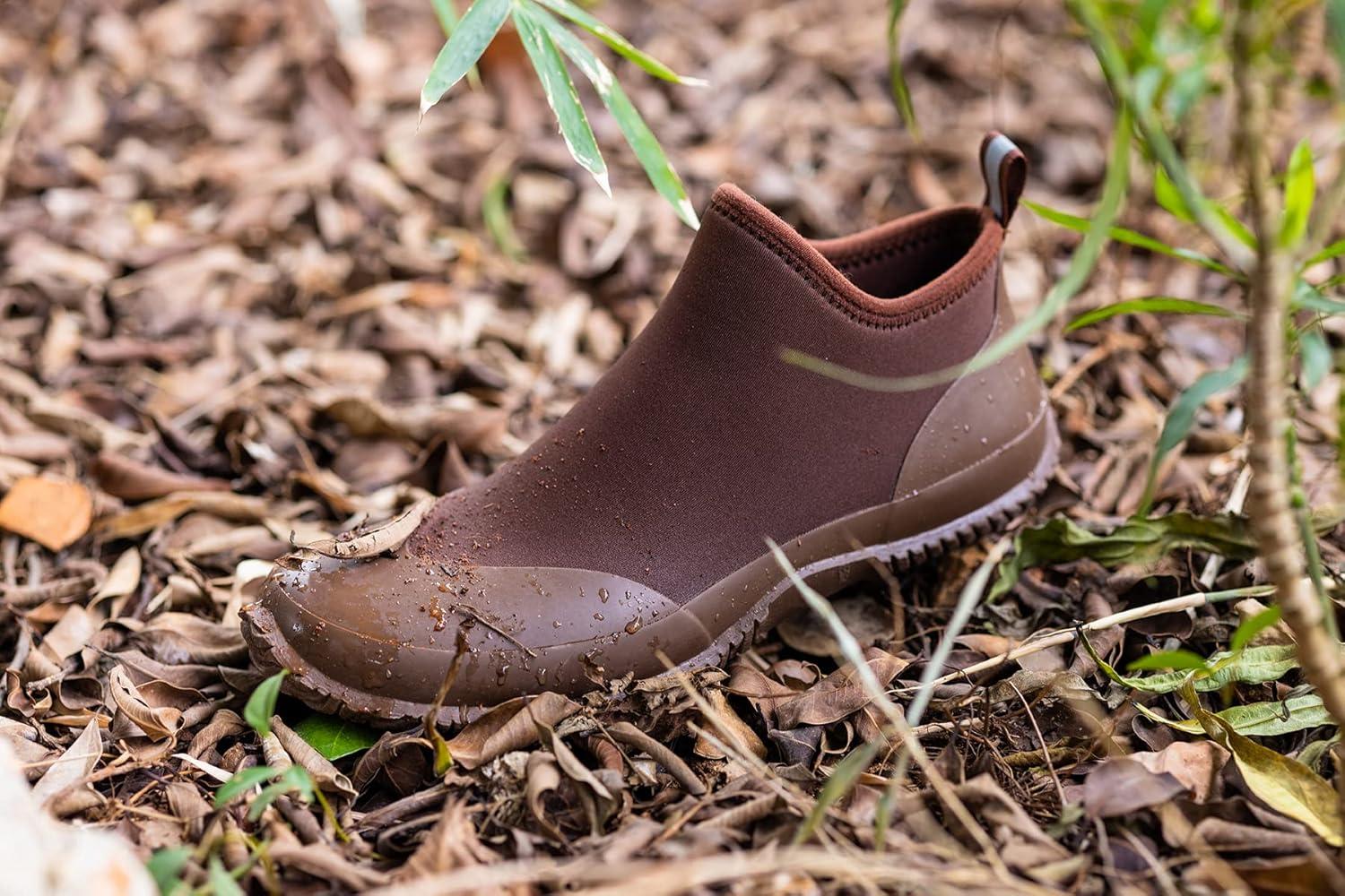 BAXINIER Waterproof Garden Shoes Mens Lightweight Low Short Rain Footwear Outdoor Neoprene Rubber Boots(Brown 238)