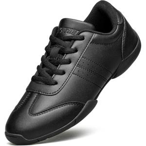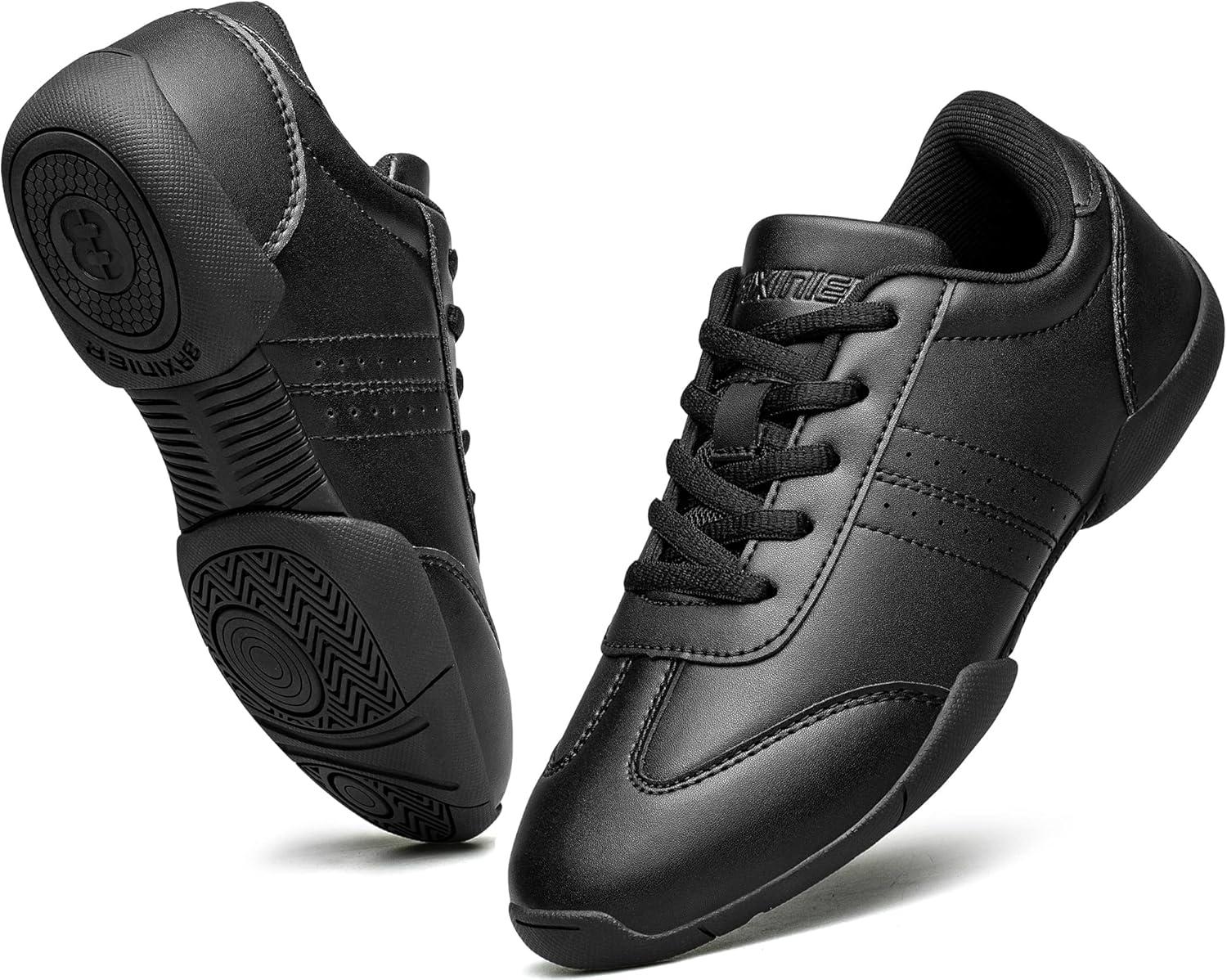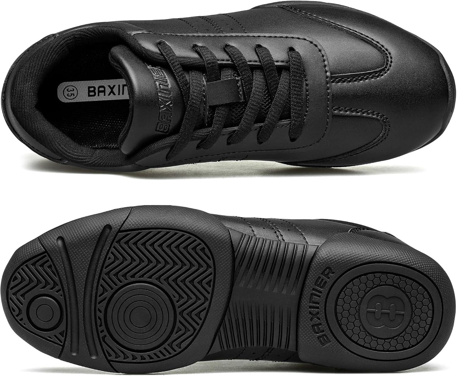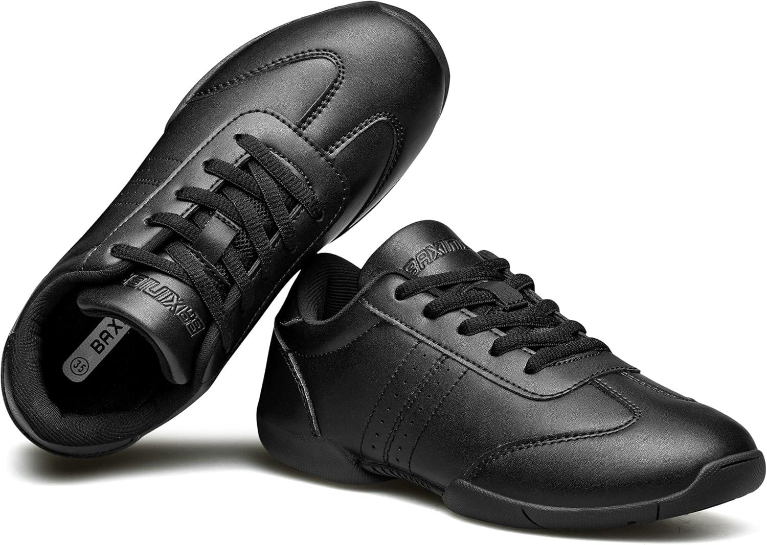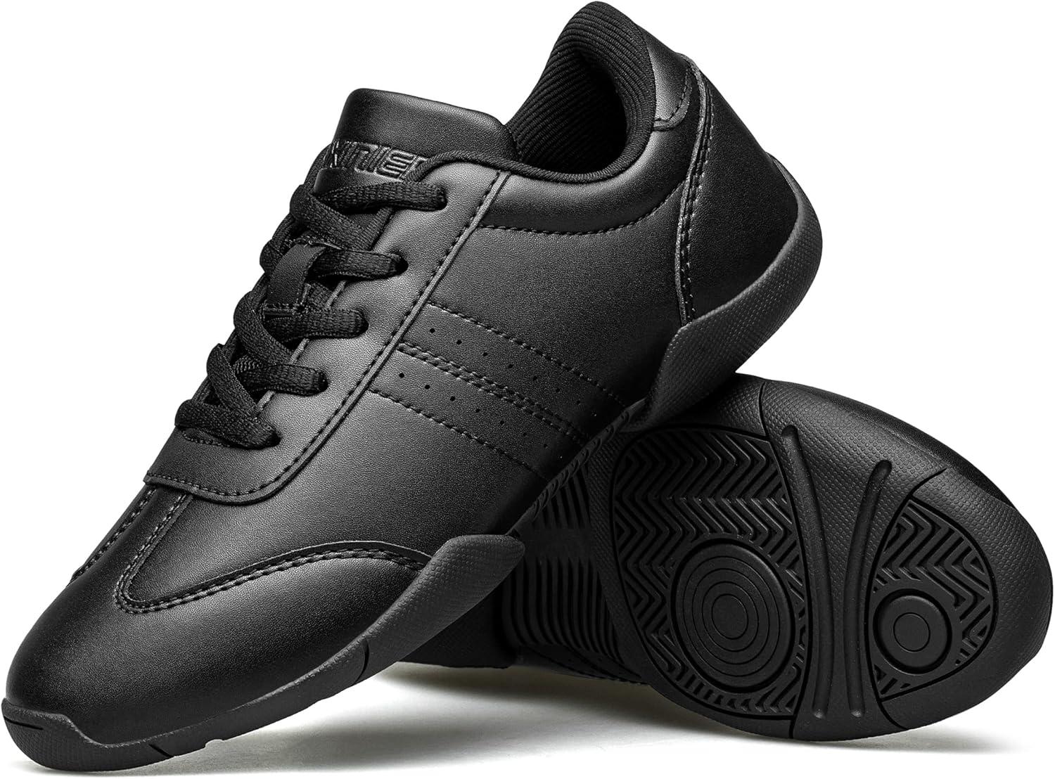BAXINIER Youth Girls White Cheerleading Dancing Shoes Athletic Training Tennis Walking Breathable Competition Cheer Sneakers(Black 2116-women)