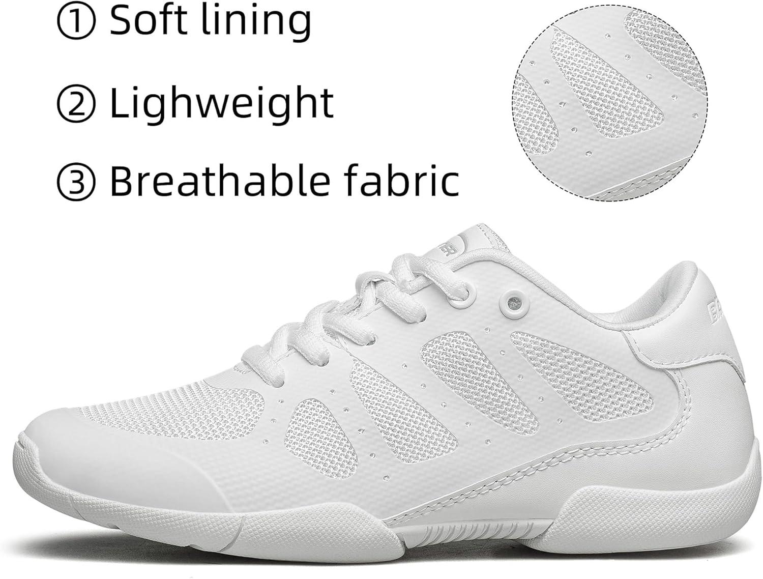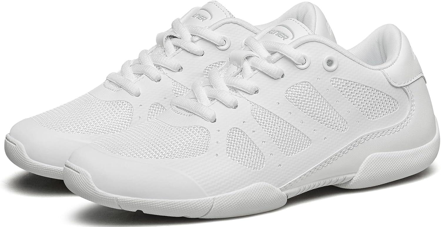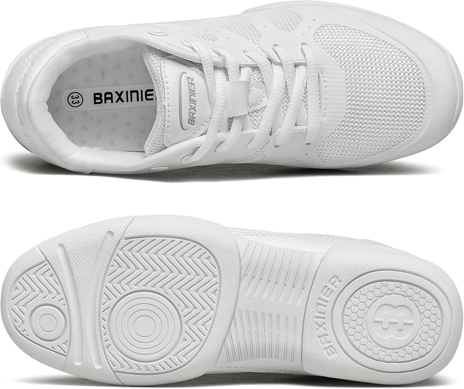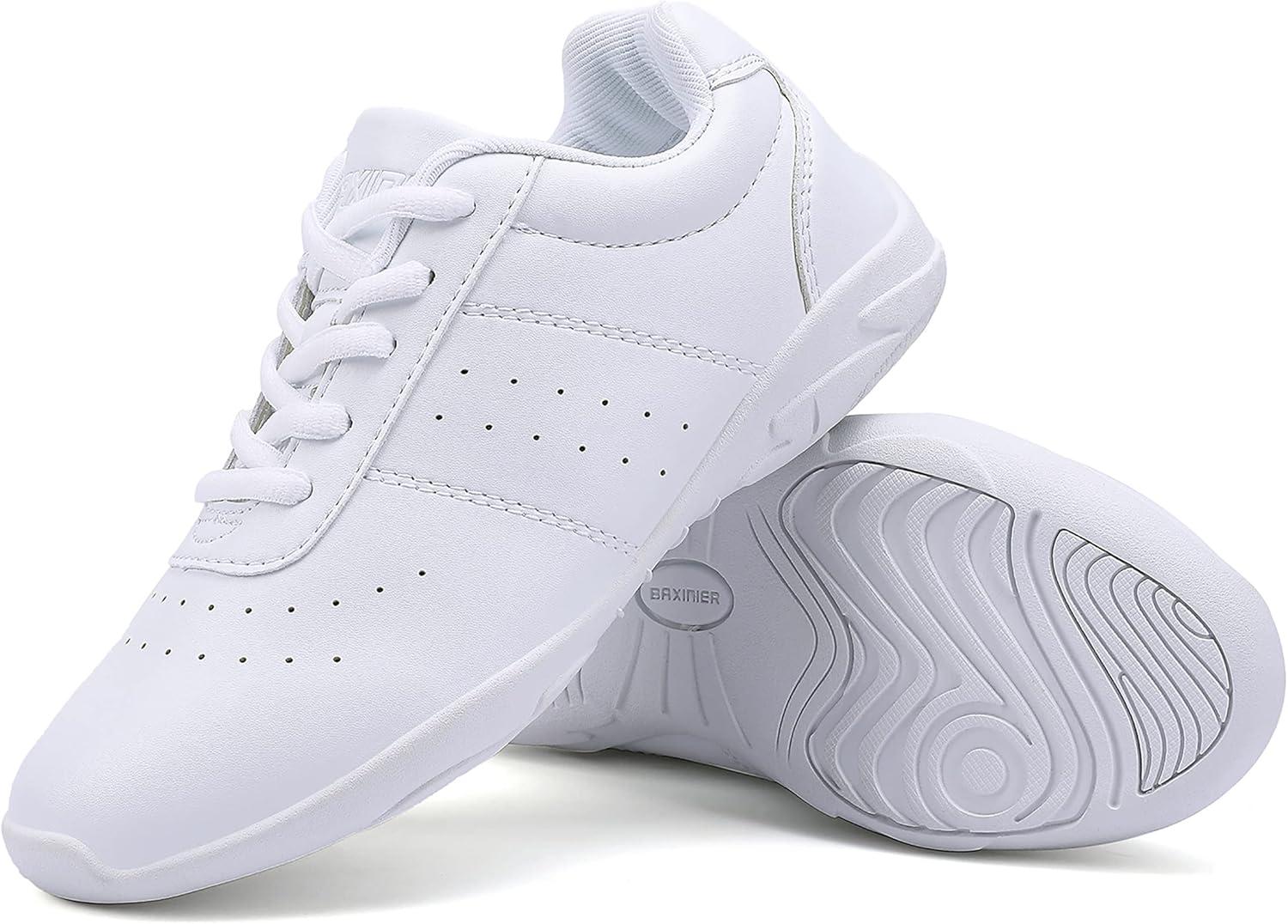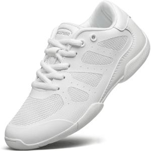BAXINIER Youth Girls White Cheerleading Dancing Shoes Athletic Training Tennis Walking Breathable Competition Cheer Sneakers(White 002)
