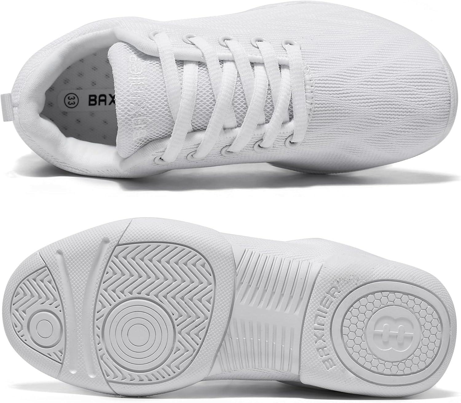 BAXINIER Girls Cheer Shoes White Cheerleading Dance Sneakers Kids Athletic Training Tennis Youth Competition Shoes(White 855)