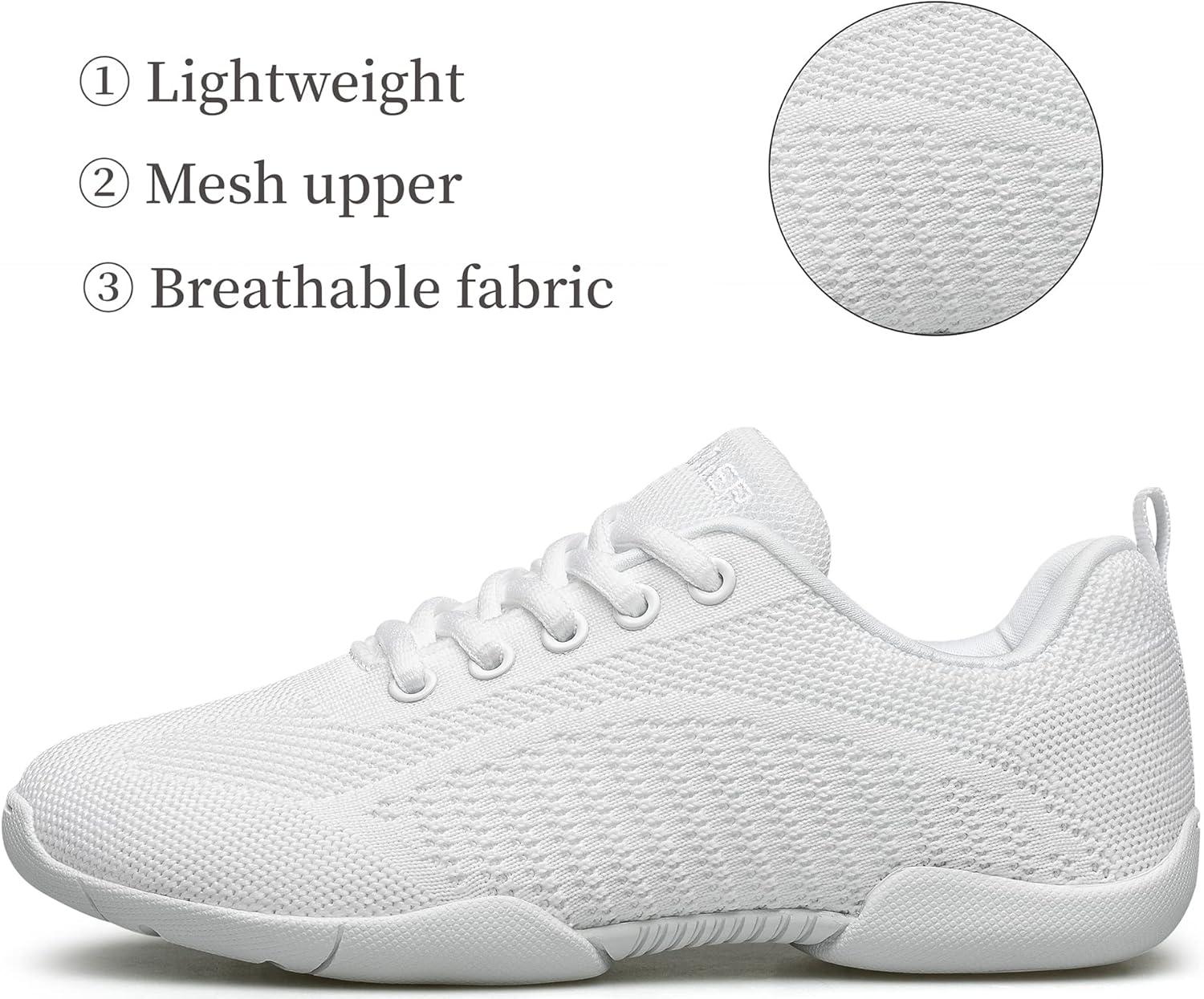 BAXINIER Girls Cheerleading Shoes Women White Cheer Shoes Youth Cheer Competition Sneakers Athletic Training Dance Tennis Shoes(White 2105-women)